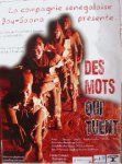 Le spectacle : Les intentions sont claires pour cette nouvelle pièce. Il s’agit de permettre au spectateur de revisiter de lourds lieux communs (sur l’Afrique mais aussi sur l’autre, l’étranger, le plus faible) traduits dans le langage par ’’des mots qui tuent’’ ...A travers une légende africaine révélée par le personnage de la Parole (élément essentiel de l’histoire de l’évolution de l’Homme), le spectacle appelle à un effort en allers-retours comiques qui, à travers des situations apparemment loin de l’actualité, nous plongent, en réalité, dans le quotidien.